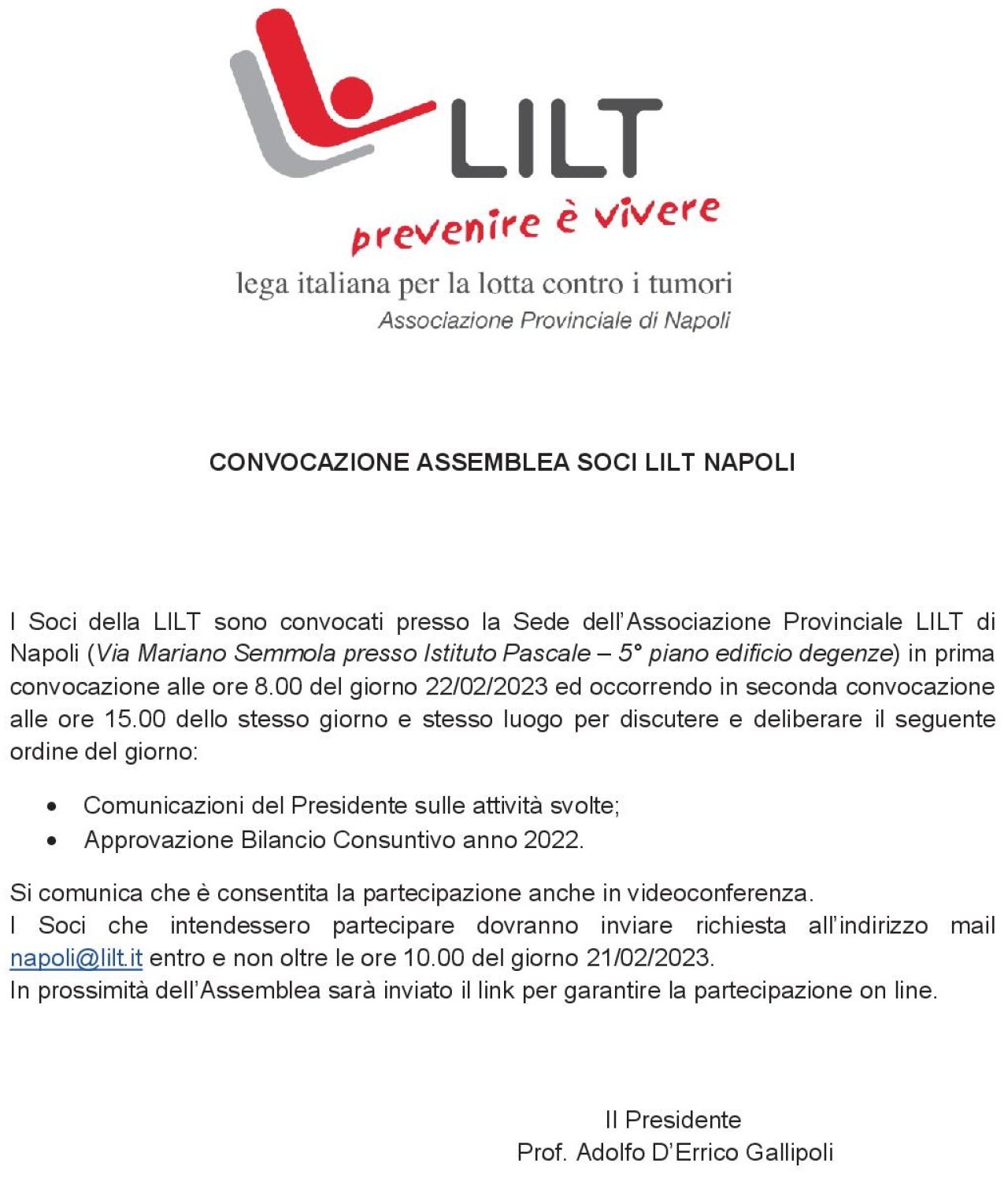 CONVOCAZIONE ASSEMBLEA DEI SOCI LILT